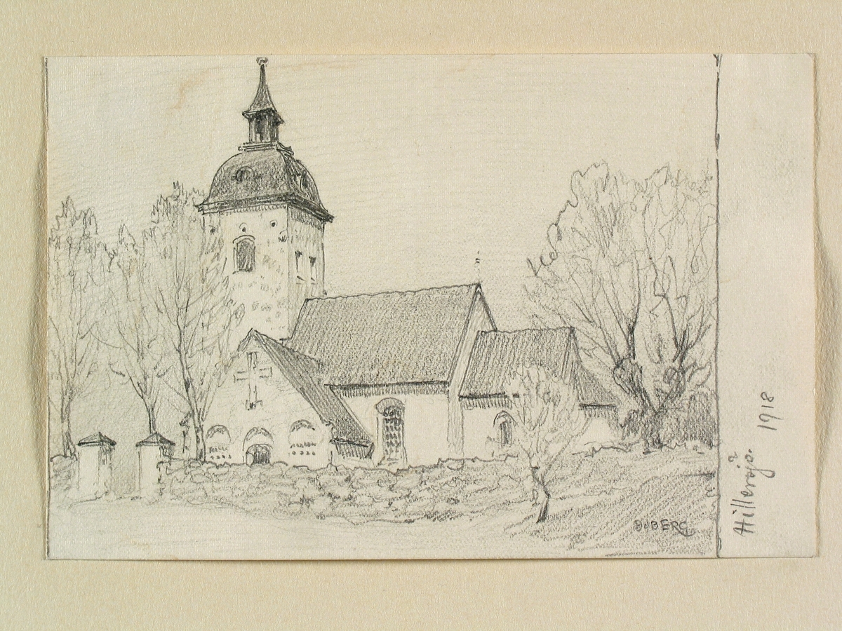 Teckning av Ferdinand Boberg. Uppland, Färentuna hd., Hillersjö kyrka