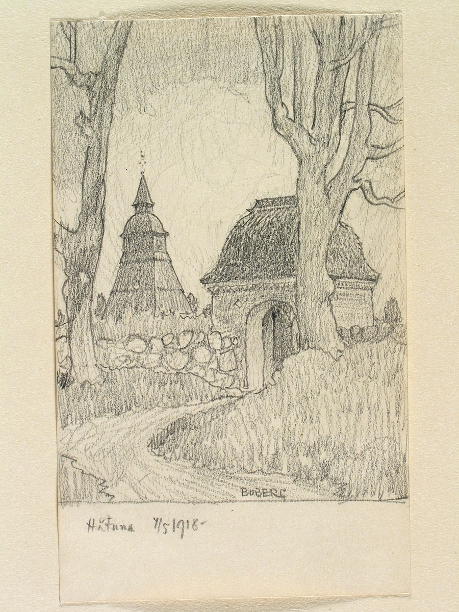 Teckning av Ferdinand Boberg. Uppland, Håbo hd., Håtuna kyrka