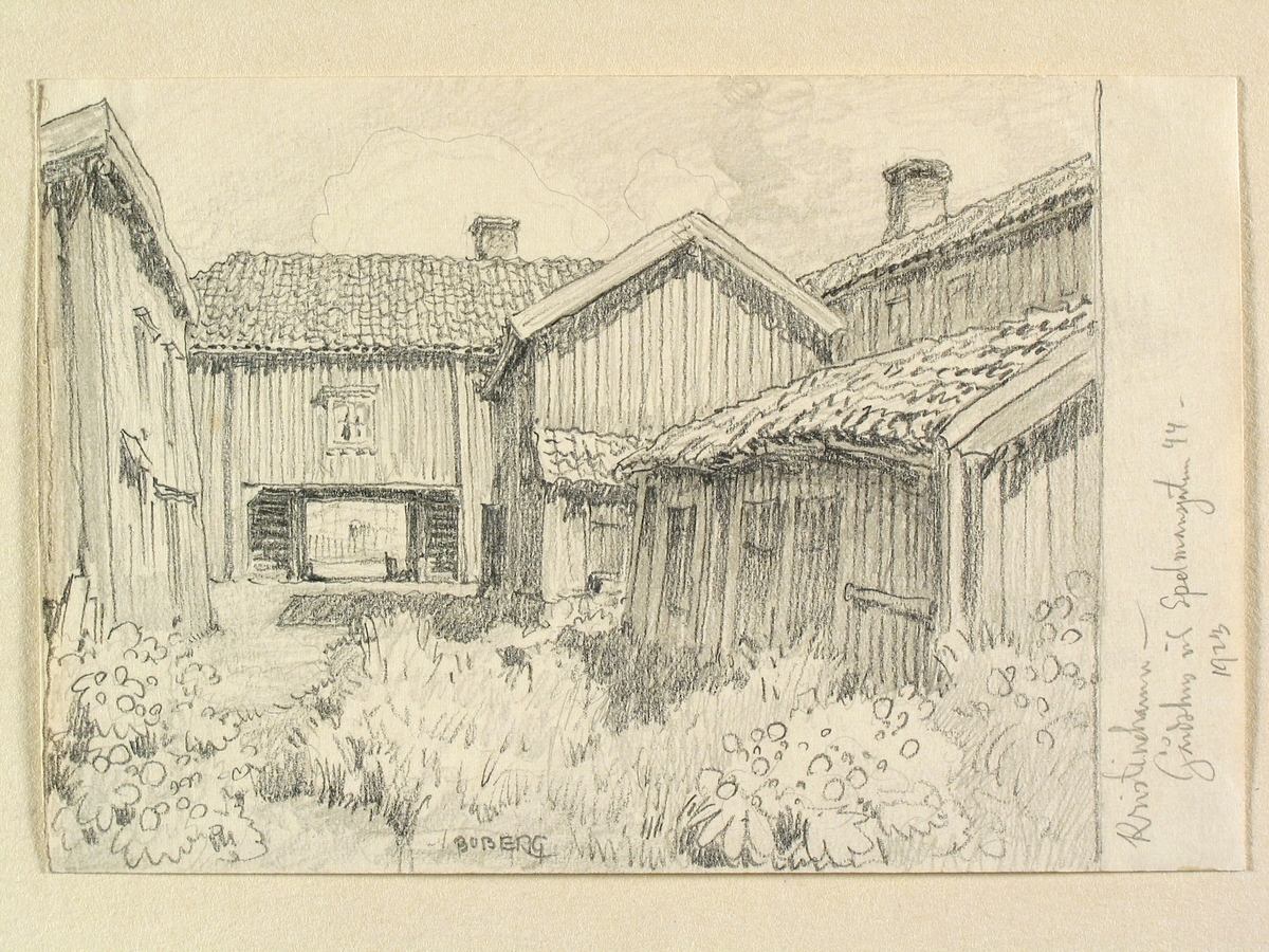 Teckning av Ferdinand Boberg. Kristinehamn, Spelmansgatan 44