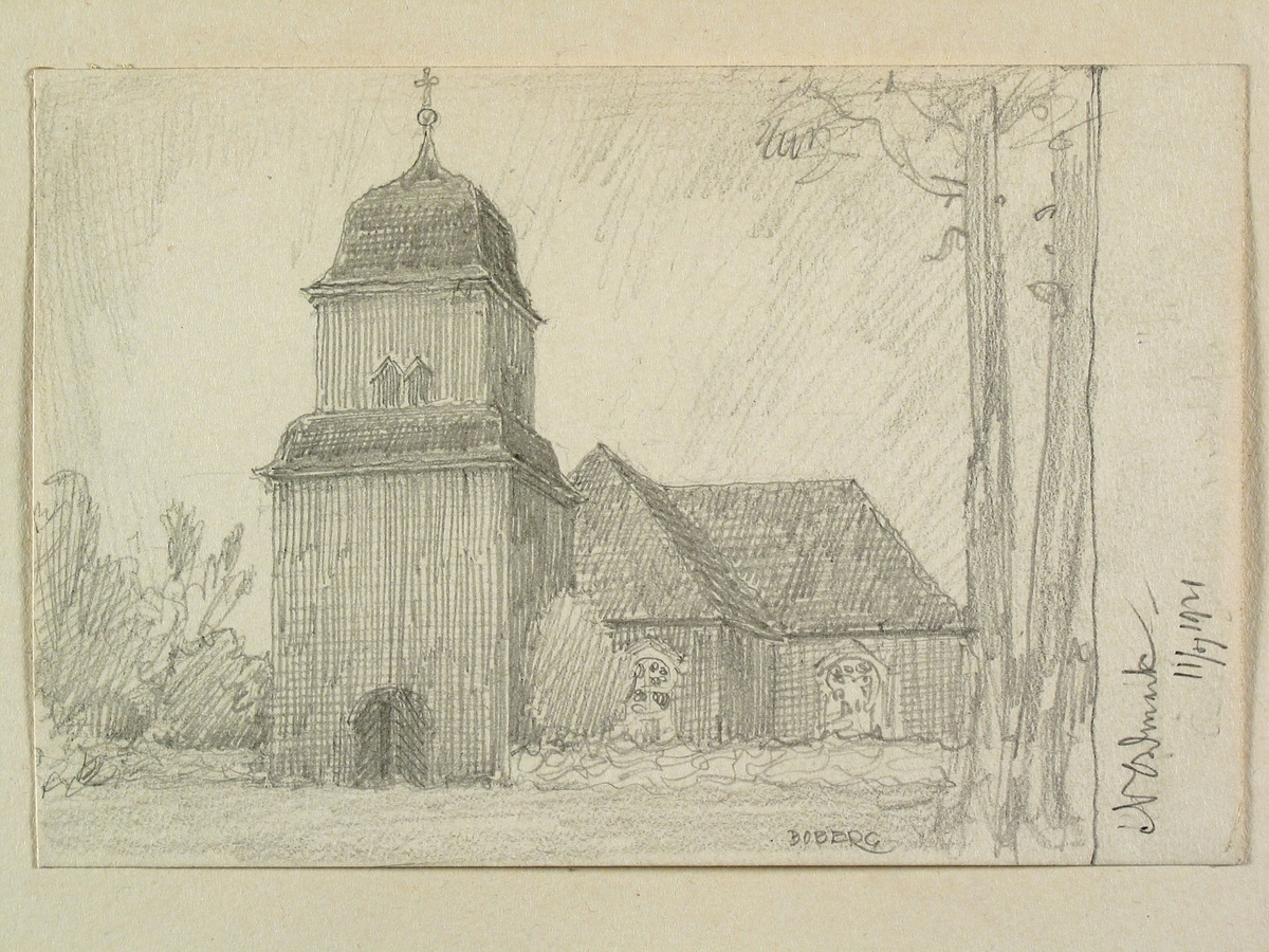 Teckning av Ferdinand Boberg. Värmland, Färnebo hd., Nordmarks kyrka