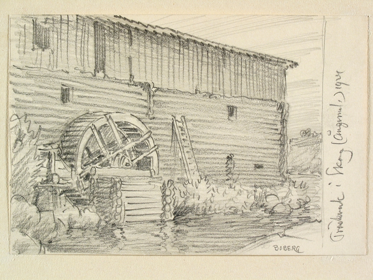 Ångermanland, Skog. Tröskverk. Teckning av Ferdinand Boberg.