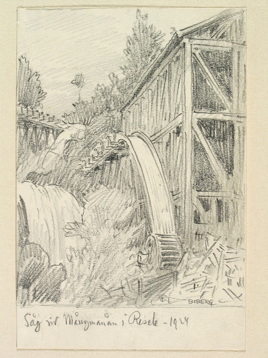 Ångermanland, Resele. Såg vid Mångmanån. Teckning av Ferdinand Boberg.