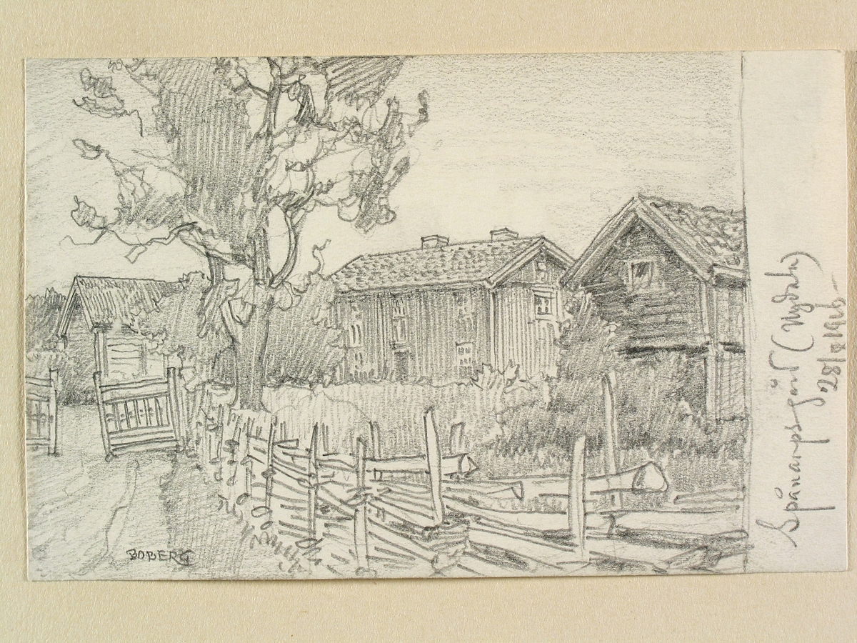 Teckning av Ferdinand Boberg. Småland, Västra hd., Vrigstads sn., Spånarp,