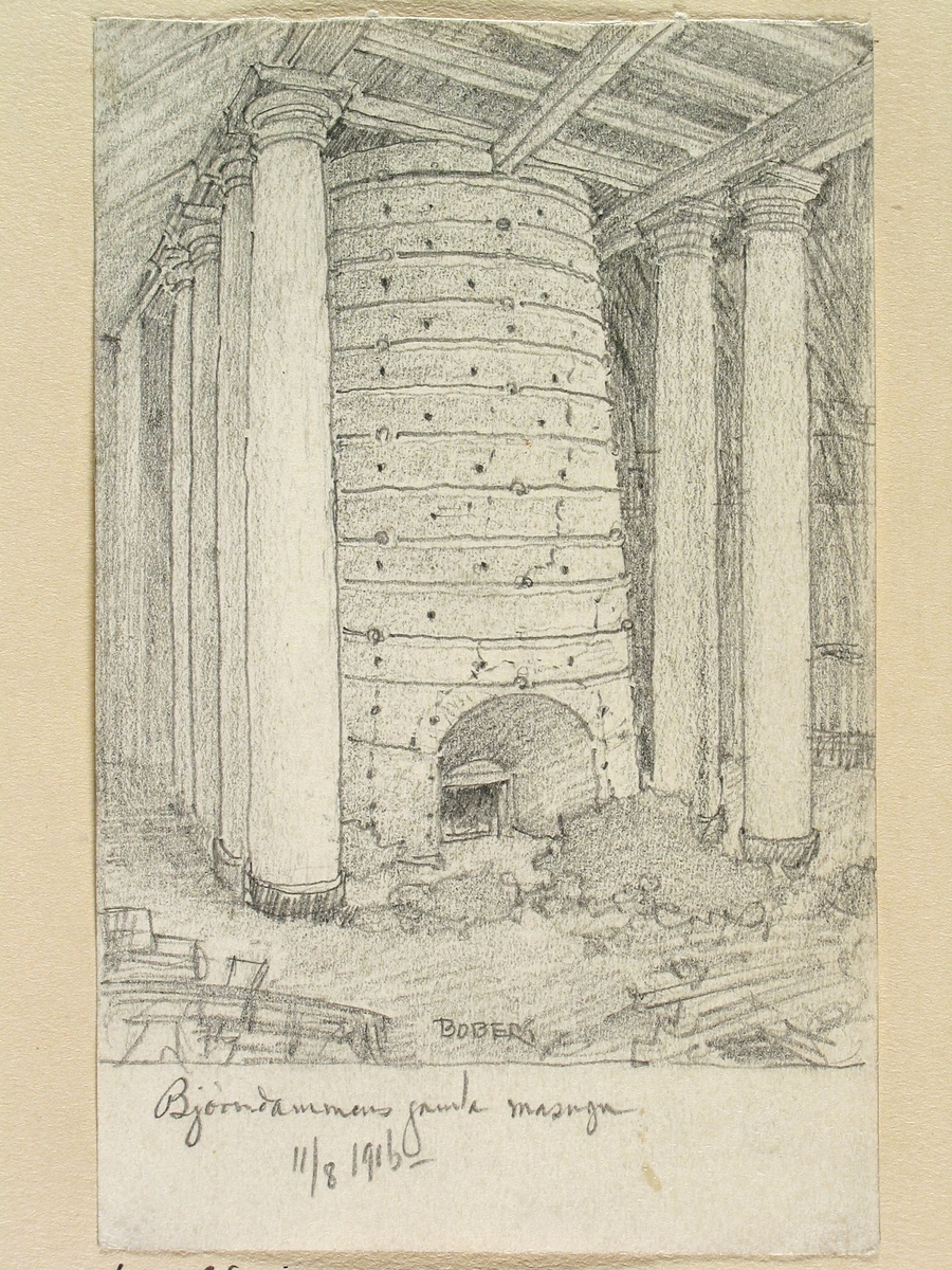 Teckning av Ferdinand Boberg. Södermanland, Villåttinge hd., Dunkers sn., Björndammen