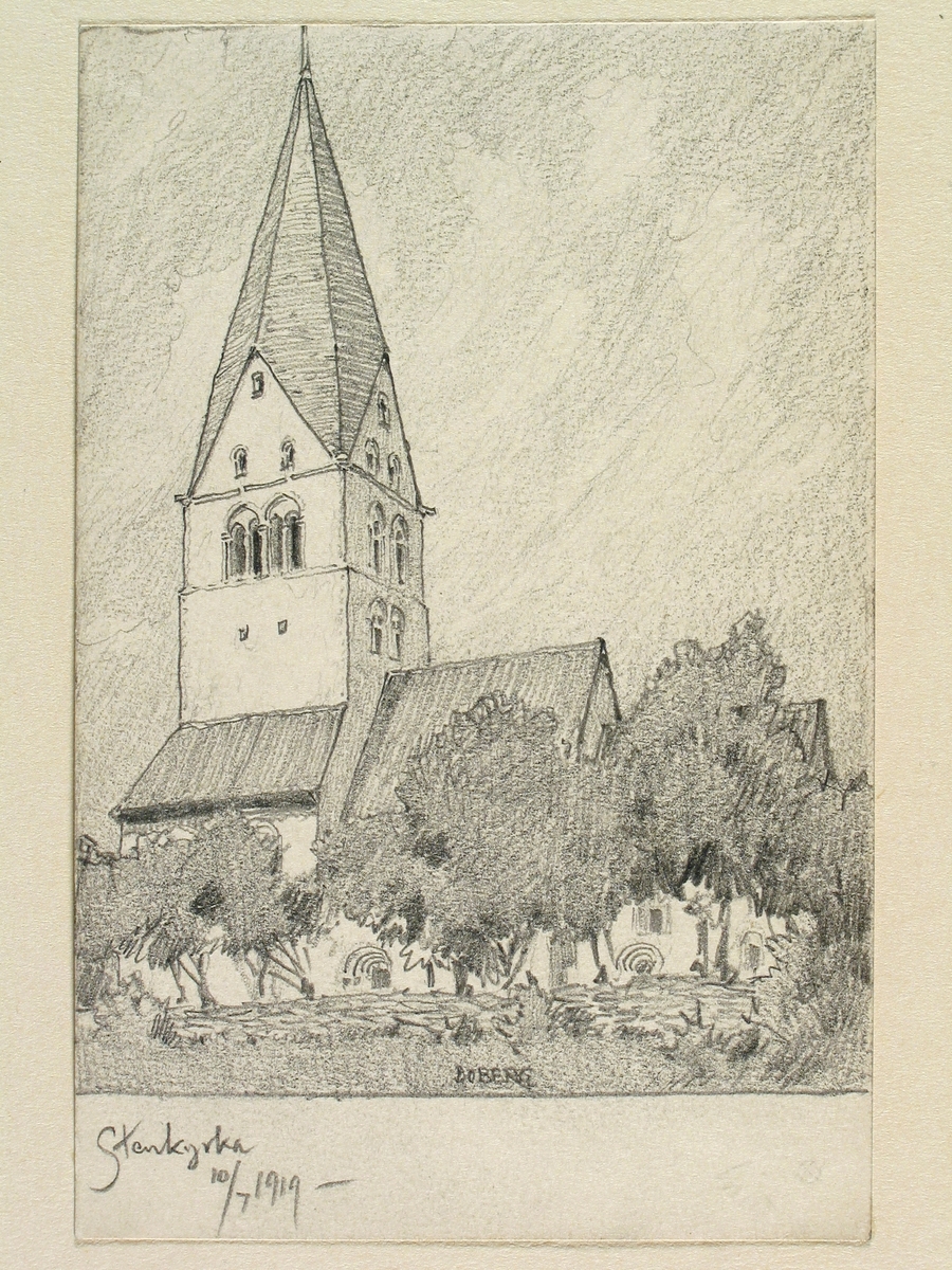 Teckning av Ferdinand Boberg. Gotland, Stenkyrka k:a