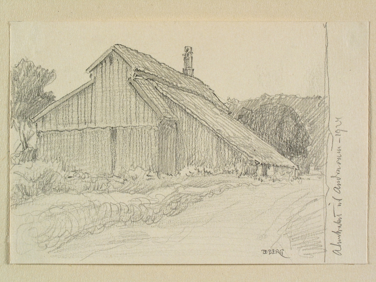 Teckning av Ferdinand Boberg. Skåne, Albo hd., Andrarums sn., Alunbruket
