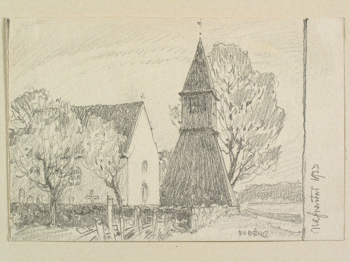 Teckning av Ferdinand Boberg. Bohuslän , Bullarens hd., Naverstads kyrka
