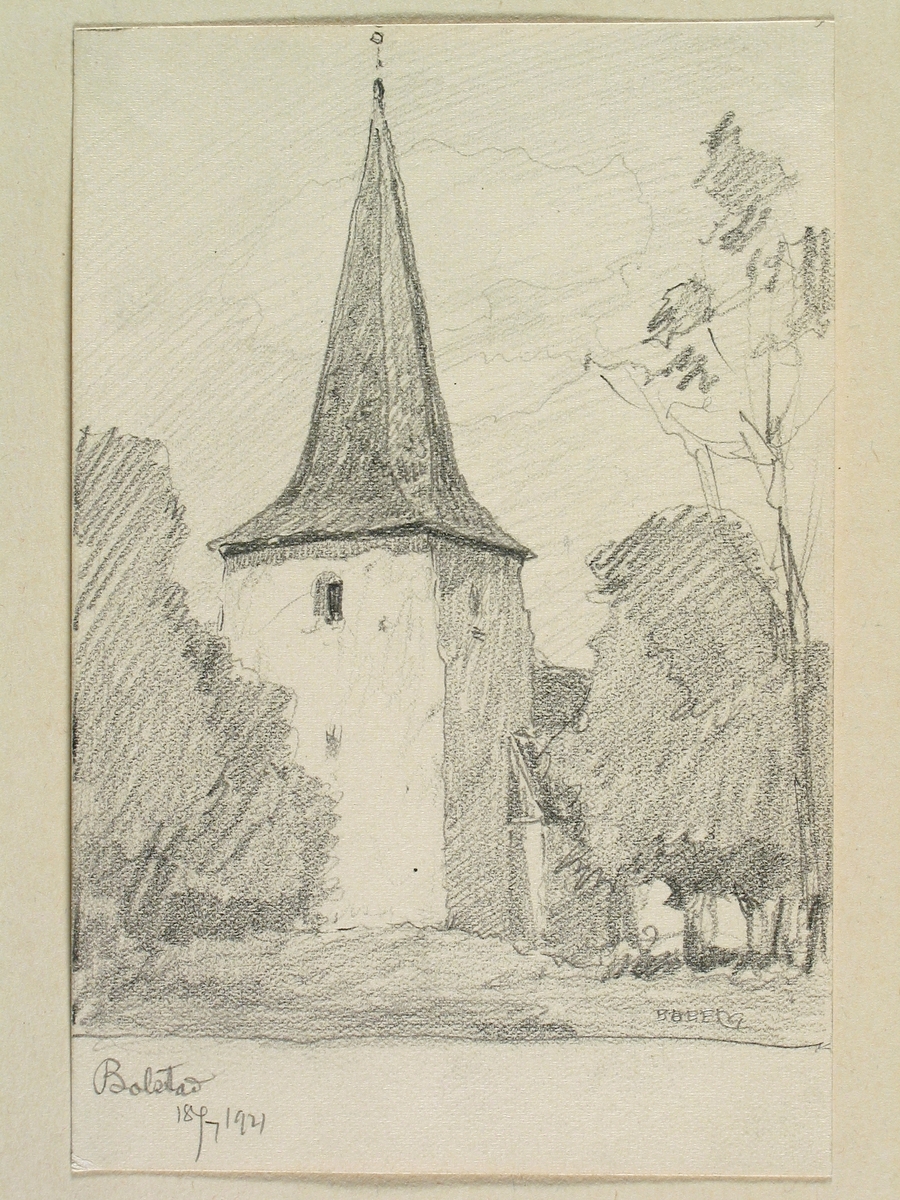 Teckning av Ferdinand Boberg. Dalsland, Sundals hd., Bolstads kyrka,