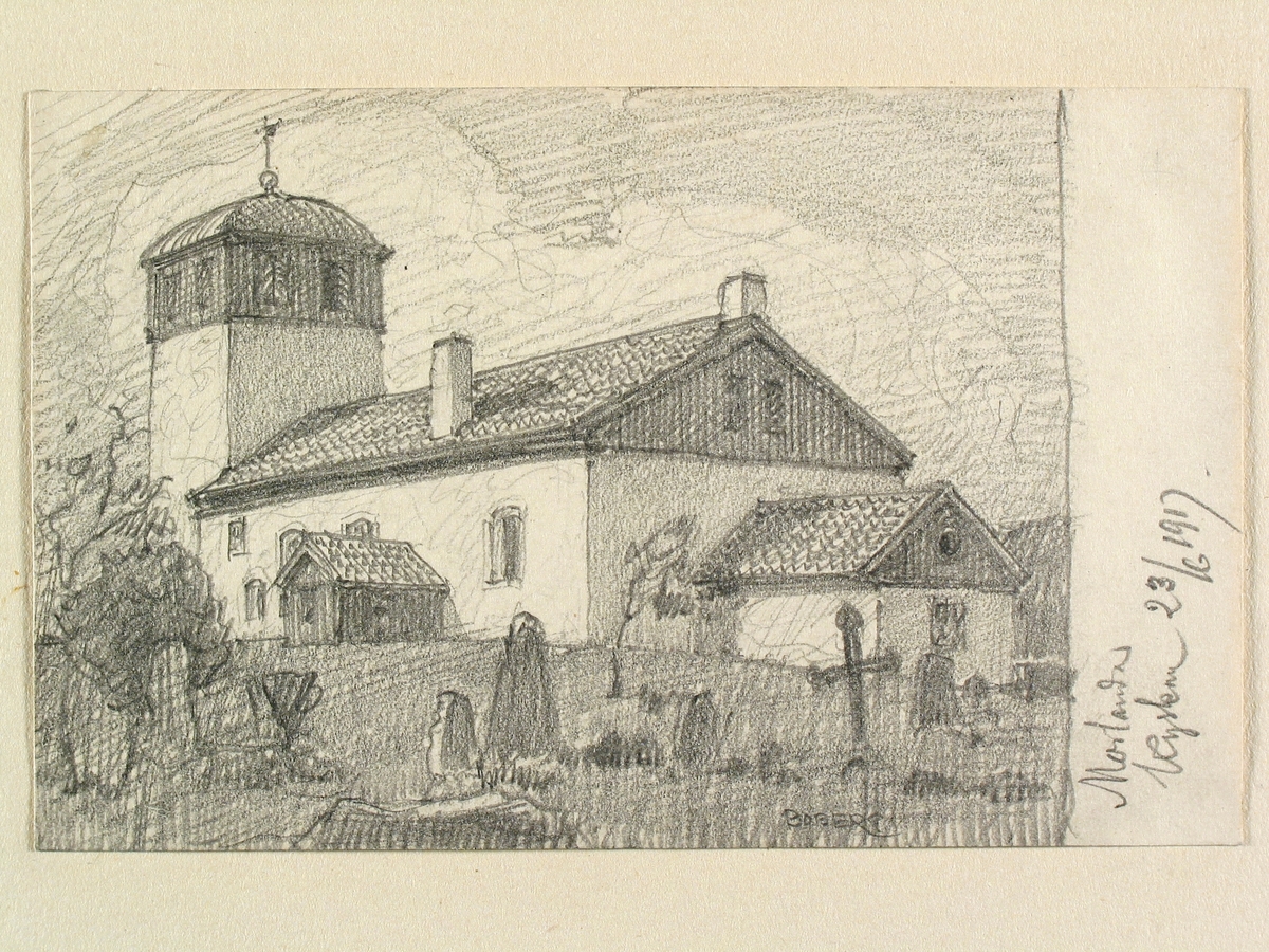 Teckning av Ferdinand Boberg. Bohuslän , Orust västar hd., Morlanda kyrka