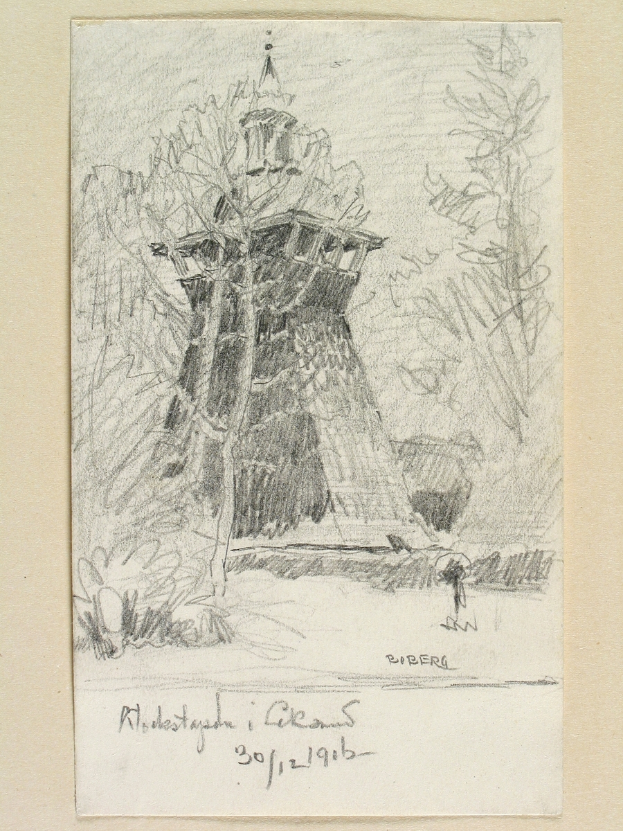 Teckning av Ferdinand Boberg. Dalarna, Leksands sn., Leksands k:a, Stapeln