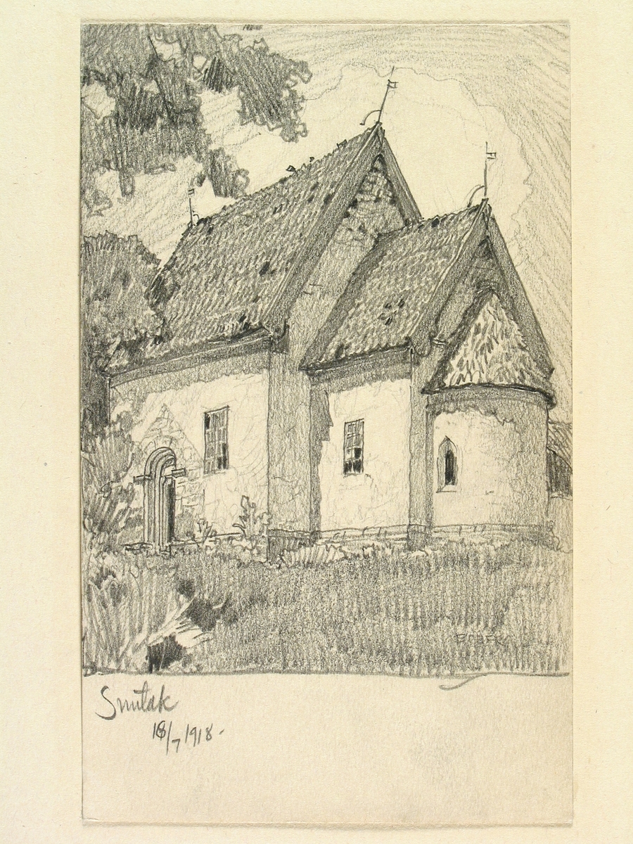Teckning av Ferdinand Boberg. Västergötland, Vartofta hd., Suntaks sn., Ödekyrkan