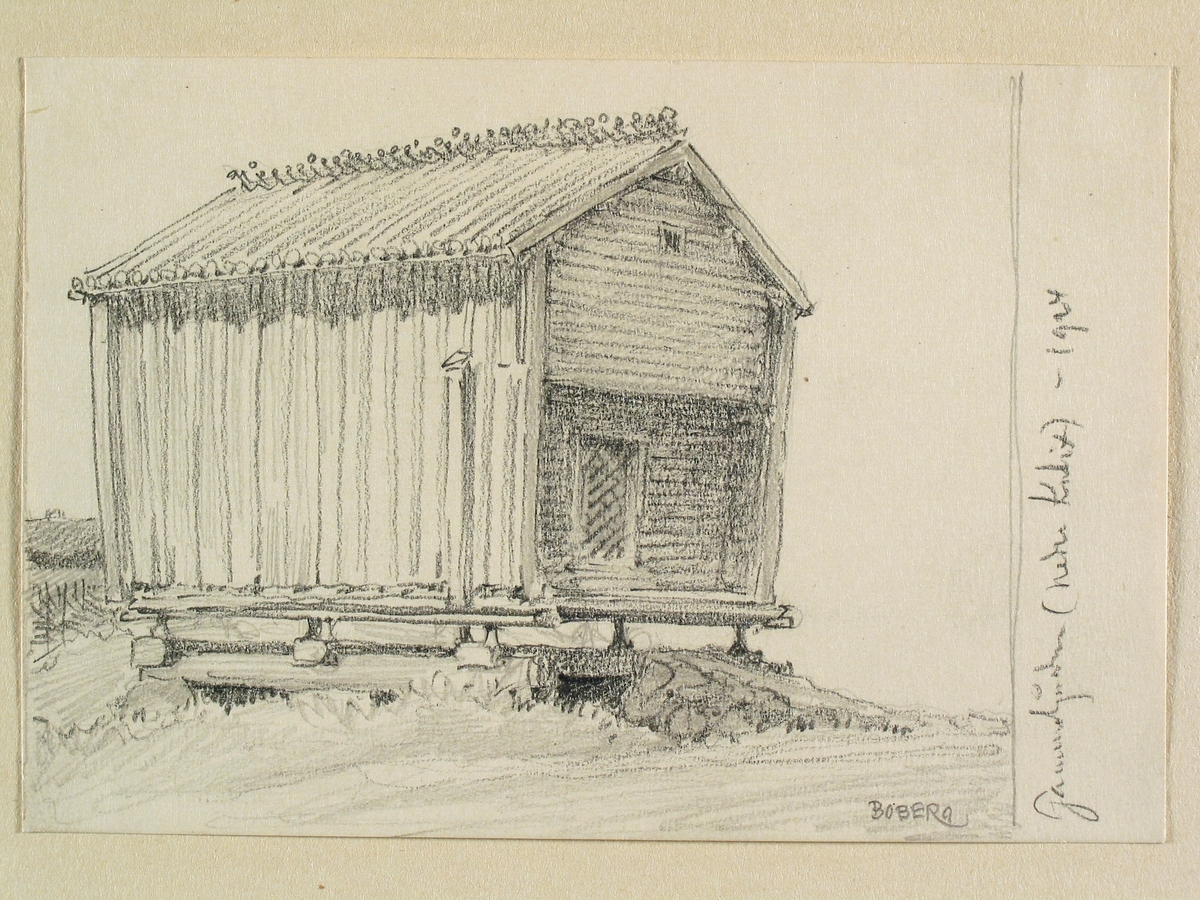 Norrbotten, Nederkalix sn., Gammelgården. Teckning av Ferdinand Boberg.