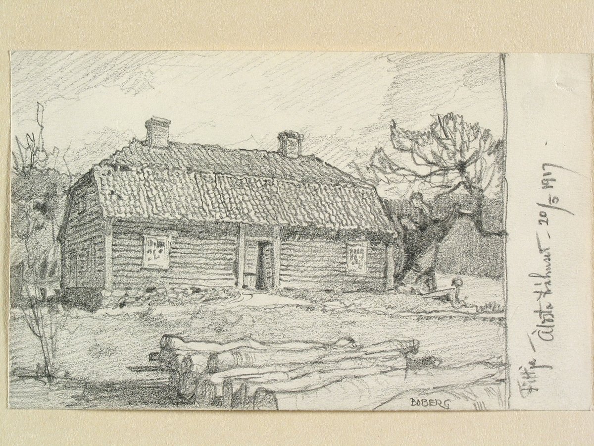 Södermanland, Svartlösa hd., Botkyrka sn., Fittja. "Äldsta trähuset". Teckning av Ferdinand Boberg