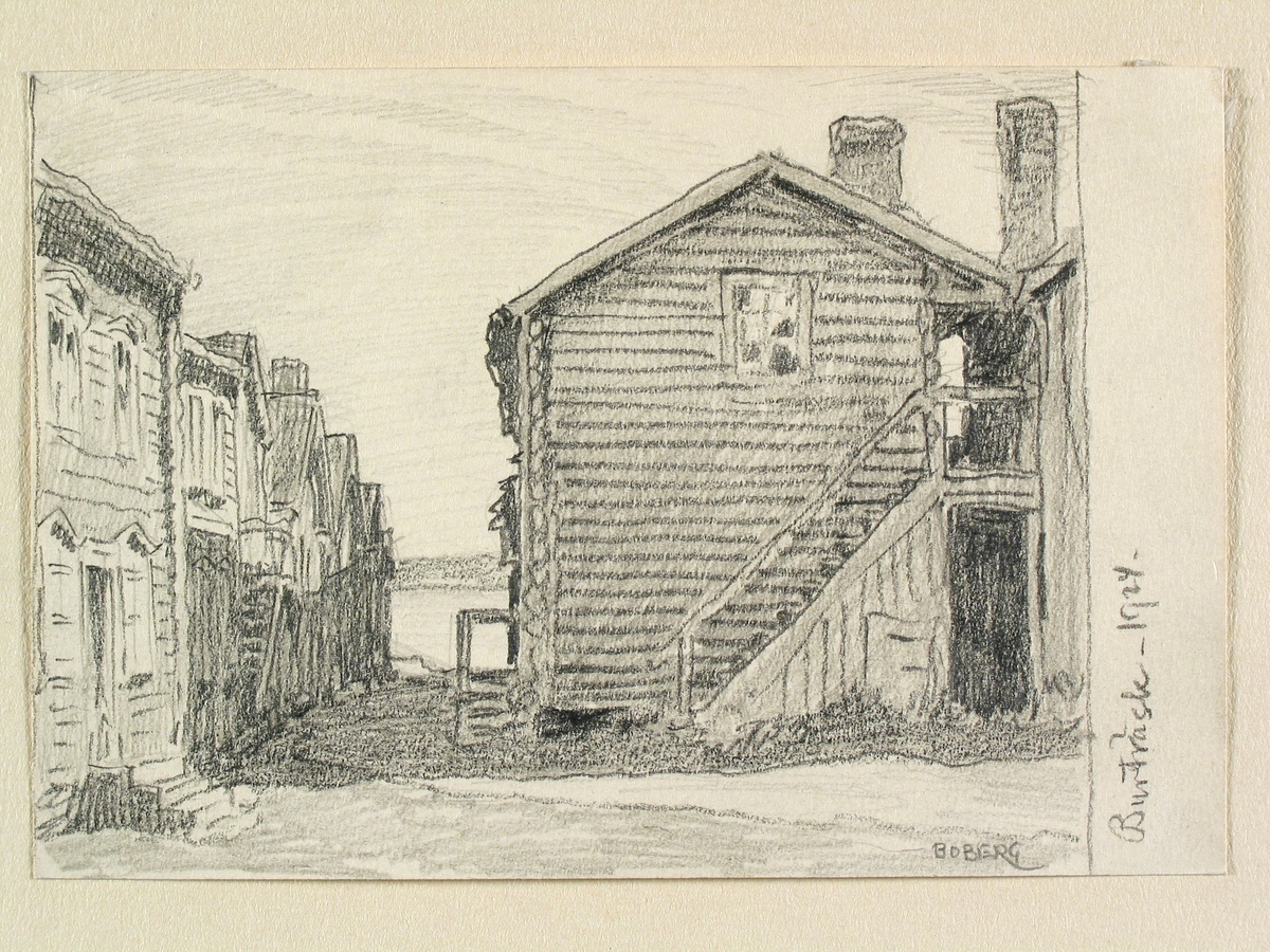 Västerbotten, Burträsks sn., Kyrkstaden. Teckning av Ferdinand Boberg