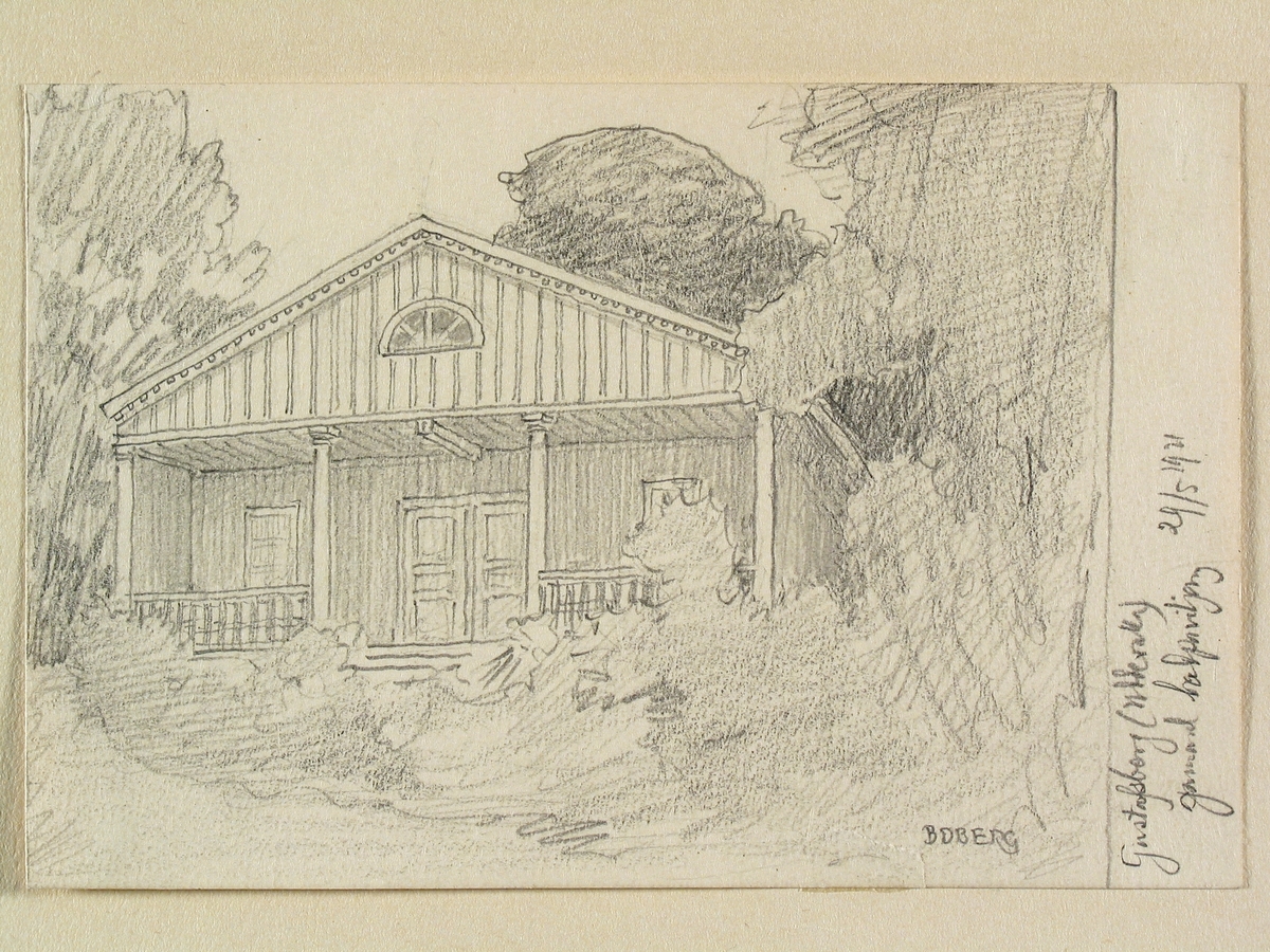 "Gammal badpaviljong " , Villa Carolina i Gustafsberg Lane härad, Skredsviks socken. i Bohuslän, Teckning 29 maj 1921, , av Ferdinand Boberg.