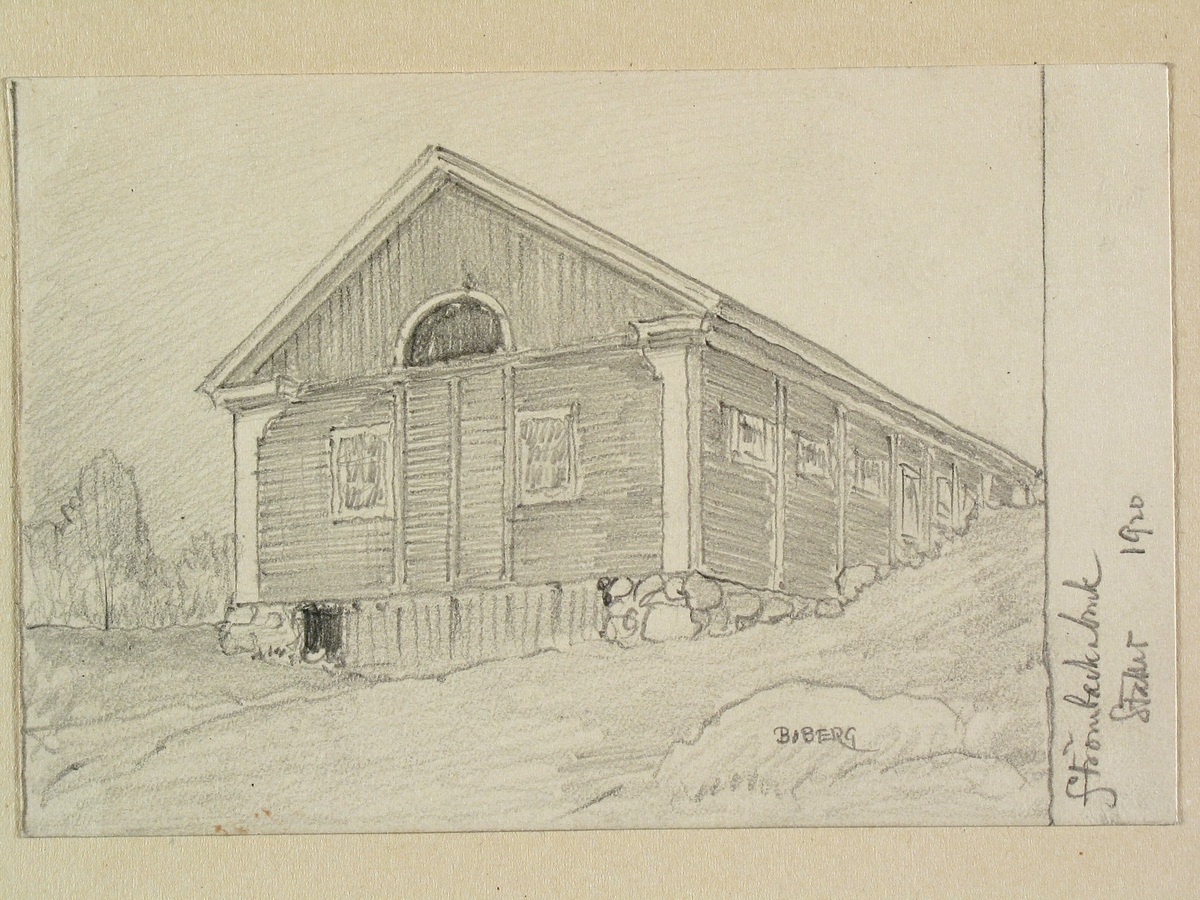 Teckning av Ferdinand Boberg. Hälsingland, Bjuråkers sn., Strömbacka