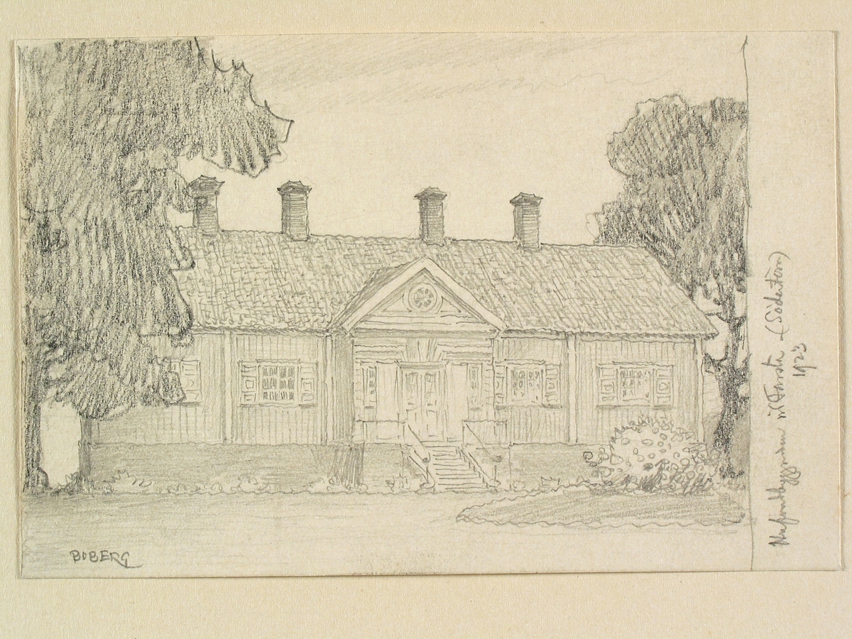 Teckning av Ferdinand Boberg. Södermanland, Öknebo hd., Ytterjärna sn. / ?Brännkyrka?, Farsta