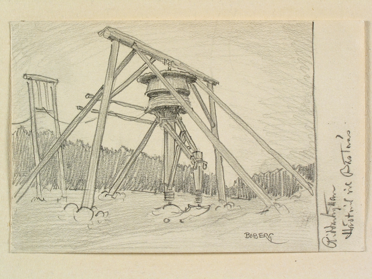 Teckning av Ferdinand Boberg. Västmanland, Skinnskattebergs blg., skinnskattebergs sn., Riddarhyttan, Bastnäs(finns endast i Nors sn)