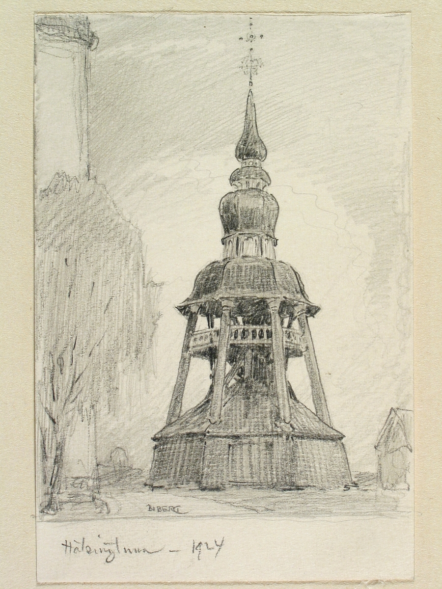 Teckning av Ferdinand Boberg. Hälsingland, Hälsingtuna kyrka