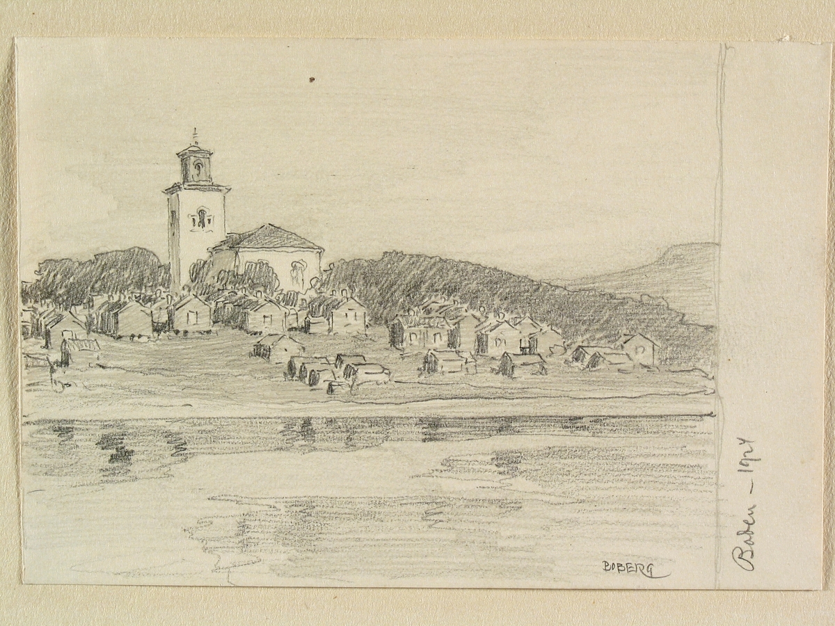 Teckning av Ferdinand Boberg. Boden, Kyrkstaden