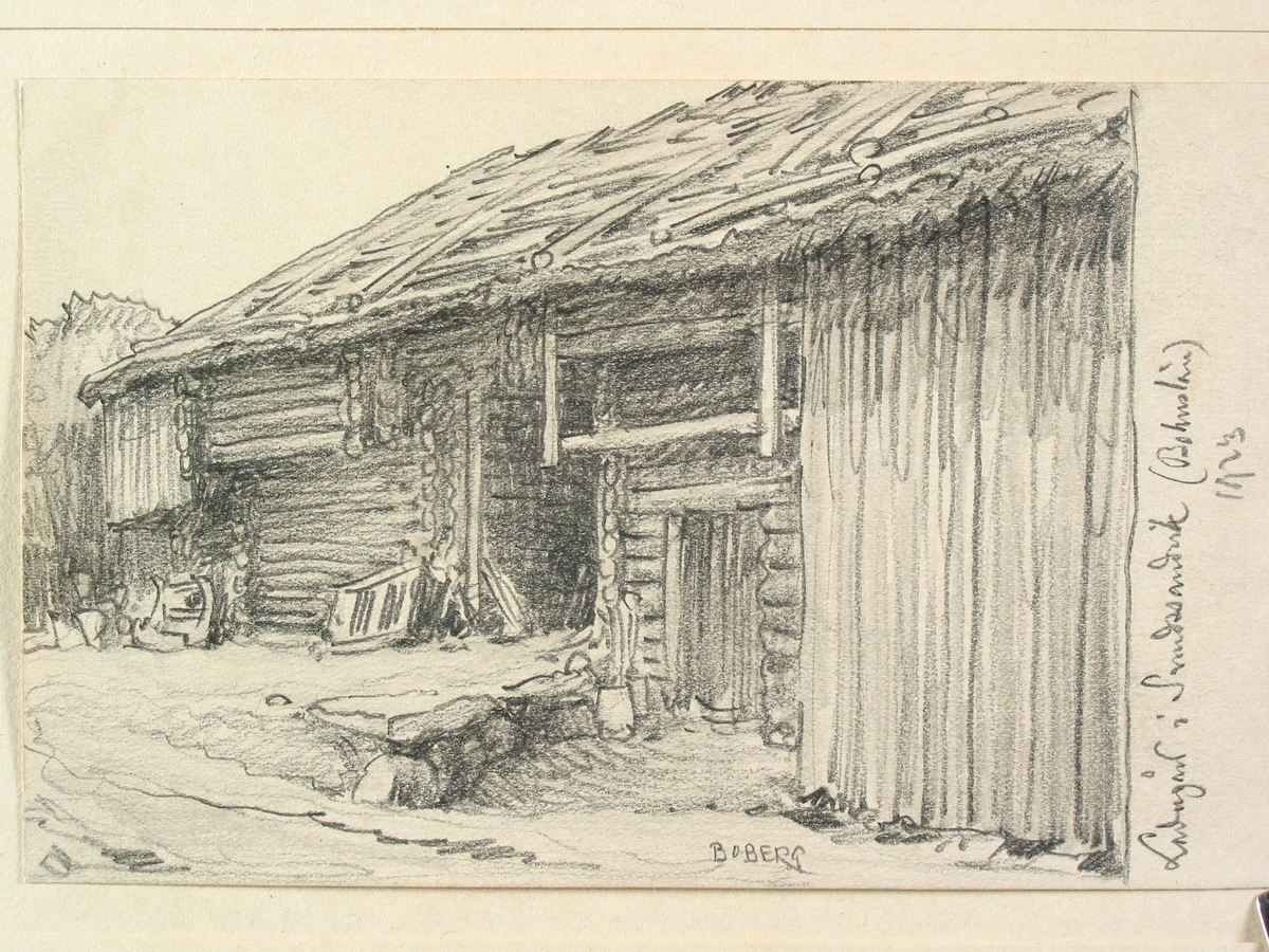 Bohuslän, Sundsandvik. Ladugård. Teckning av Ferdinand Boberg.