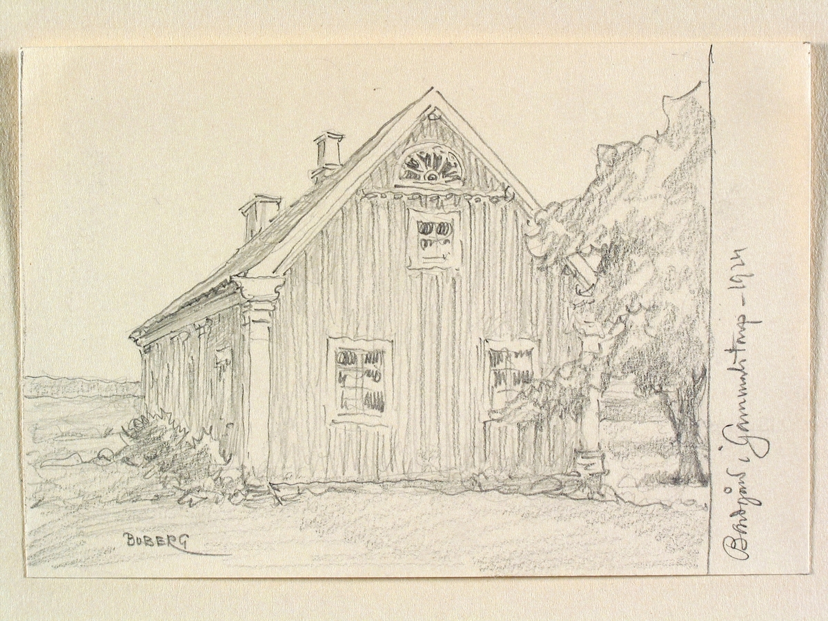 Blekinge, Gammalstorp. Bondgård. Teckning av Ferdinand Boberg