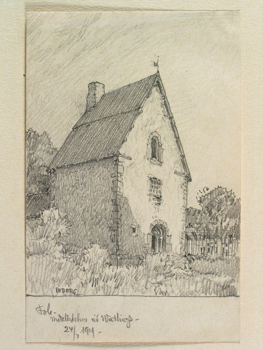 Gotland, Fole sn., Vatlings. Medeltida stenhus. Teckning av Ferdinand Boberg