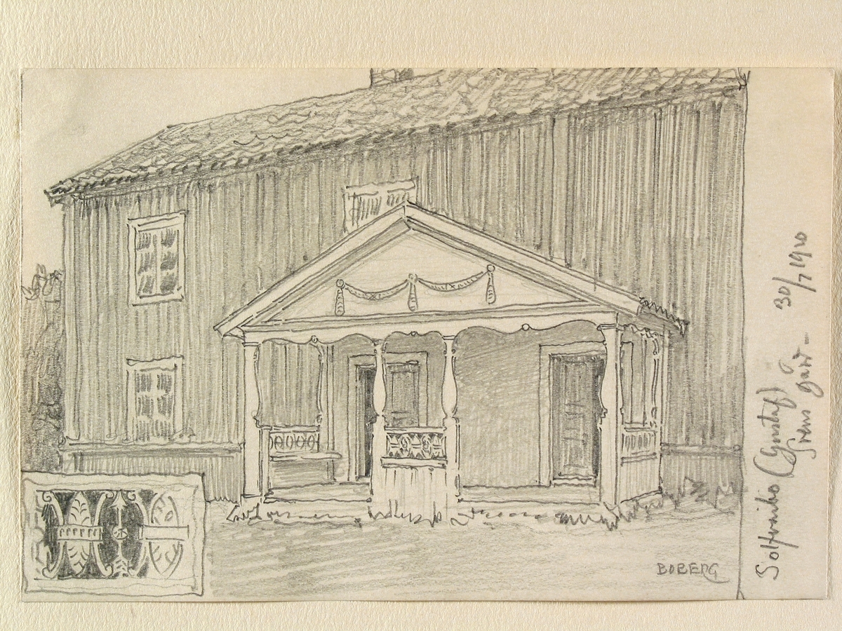 Dalarna, Gustafs sn., Solvarbo, Svens gård. Teckning av Ferdinand Boberg