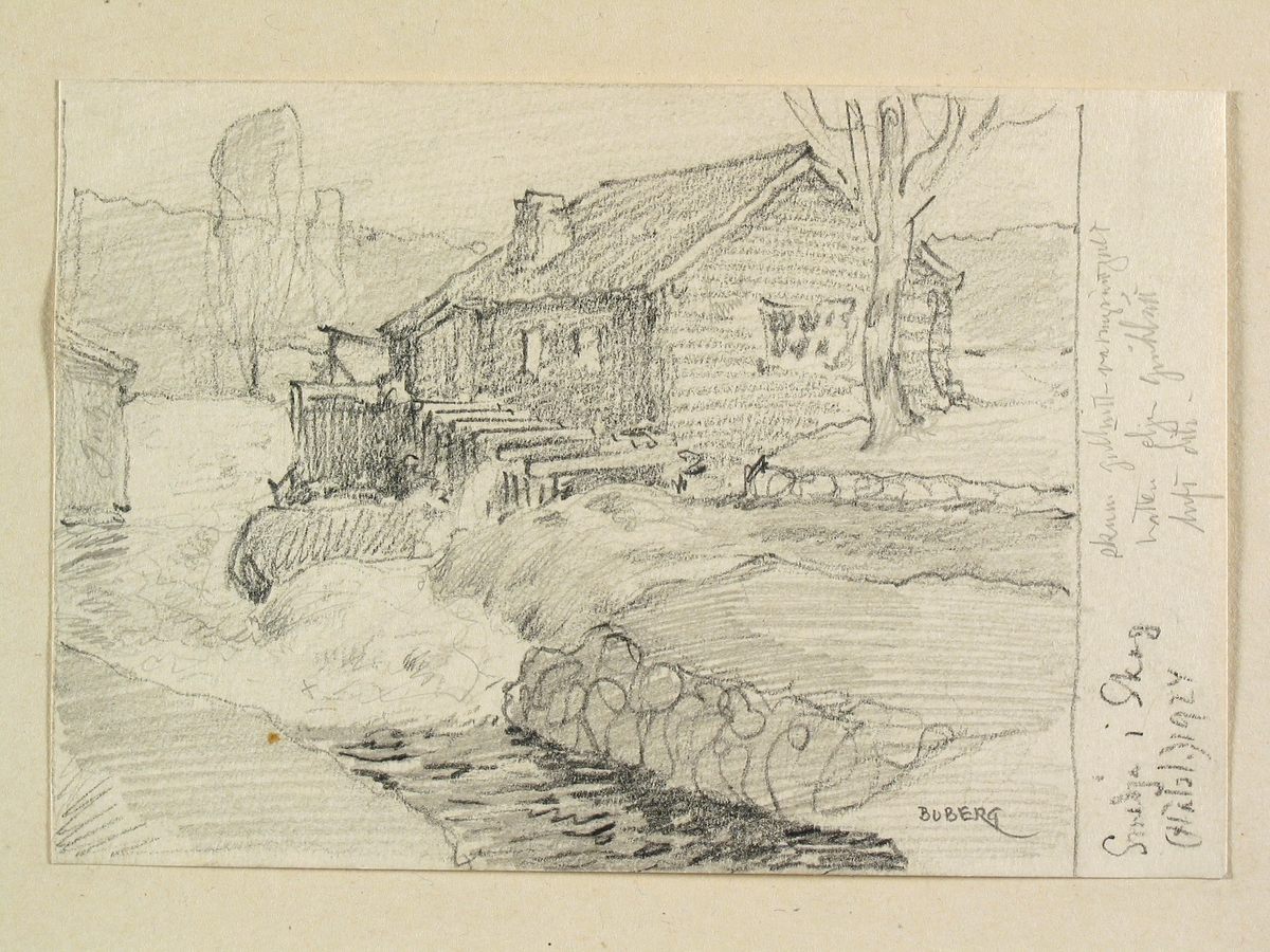 Hälsingland, Skogs sn. "Smedja i Skog". Teckning av Ferdinand Boberg