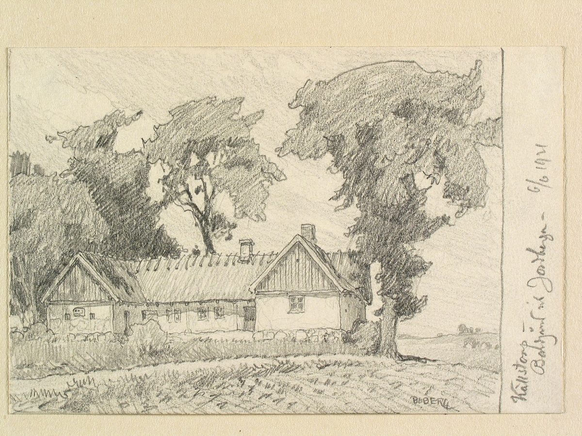 Skåne, Vemmenhögs hd., Källtorps sn. "Bondgård vid Jordberga". Teckning av Ferdinand Boberg