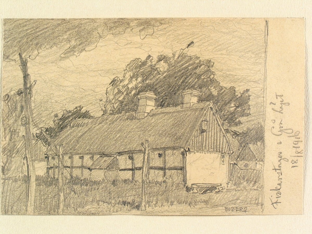 Skåne, Luggude hd., Allerums sn., Gråläge. "Fiskarstuga". Teckning av Ferdinand Boberg