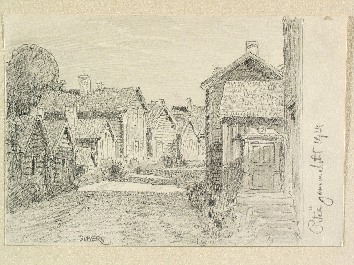 Norrbotten, Piteå landsförsamling, Piteå gammelstad. Teckning av Ferdinand Boberg.
