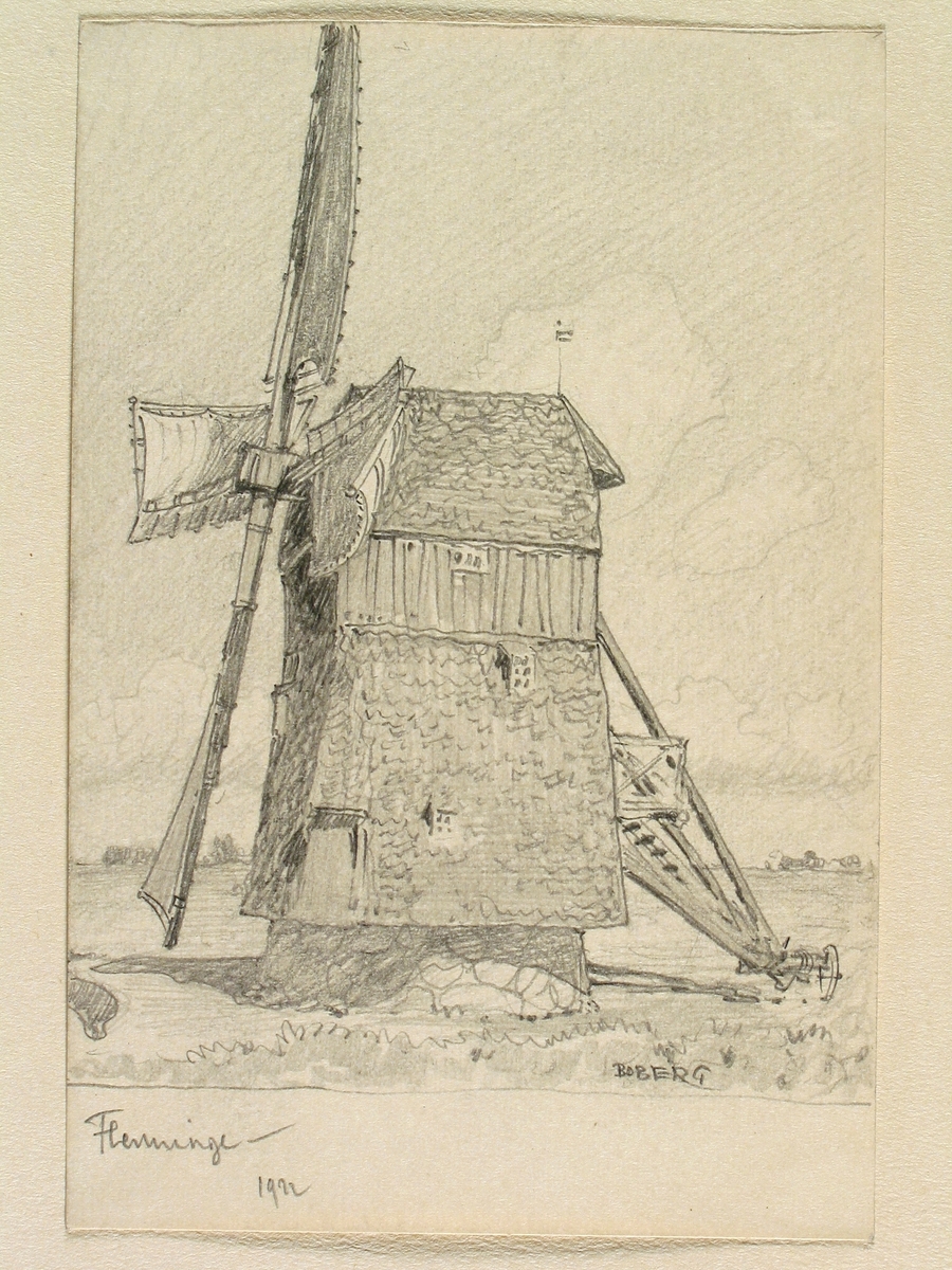 Skåne, Luggude hd., Flenninge sn., Flenninge. Väderkvarn. Teckning av Ferdinand Boberg