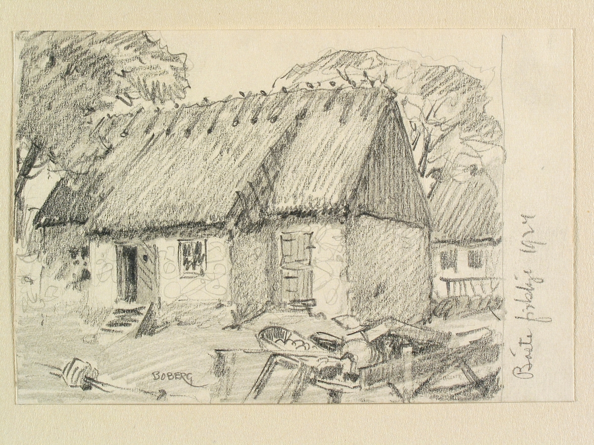 Skåne, Vemmenhögs hd., Isie sn., Böste fiskeläge. Teckning av Ferdinand Boberg