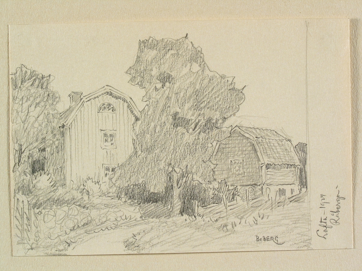 Småland, Norra Tjusts hd., Lofta sn., Råberga. Teckning av Ferdinand Boberg