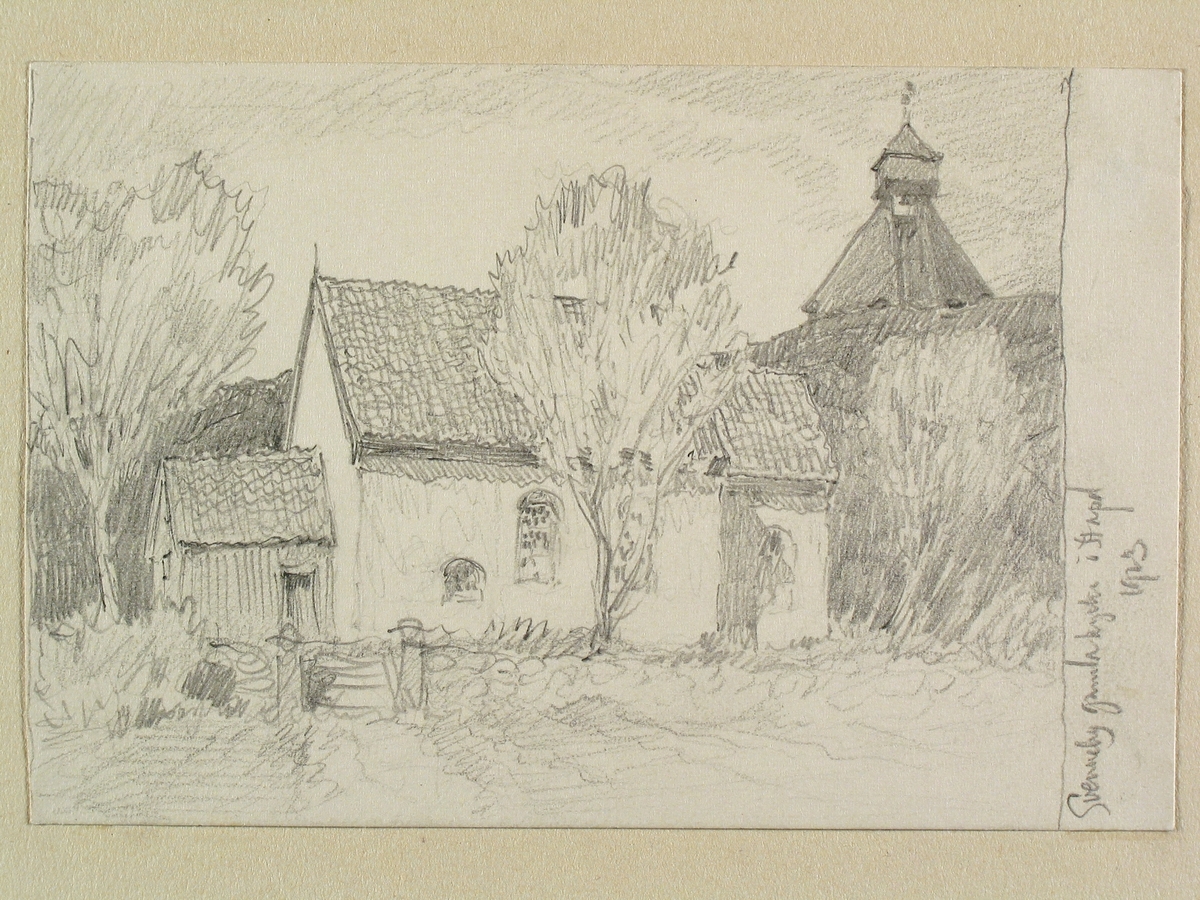 Bohuslän, Kville hd., Svenneby kyrka. Teckning av Ferdinand Boberg