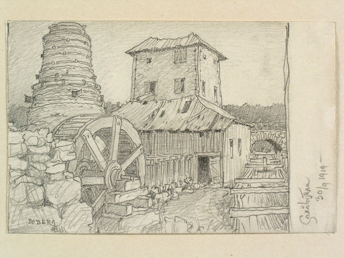 Teckning av Ferdinand Boberg. Värmland, Färnebo hd. o sn., Saxåhyttan