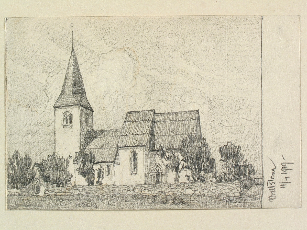 Teckning av Ferdinand Boberg. Gotland, Vallstena k:a