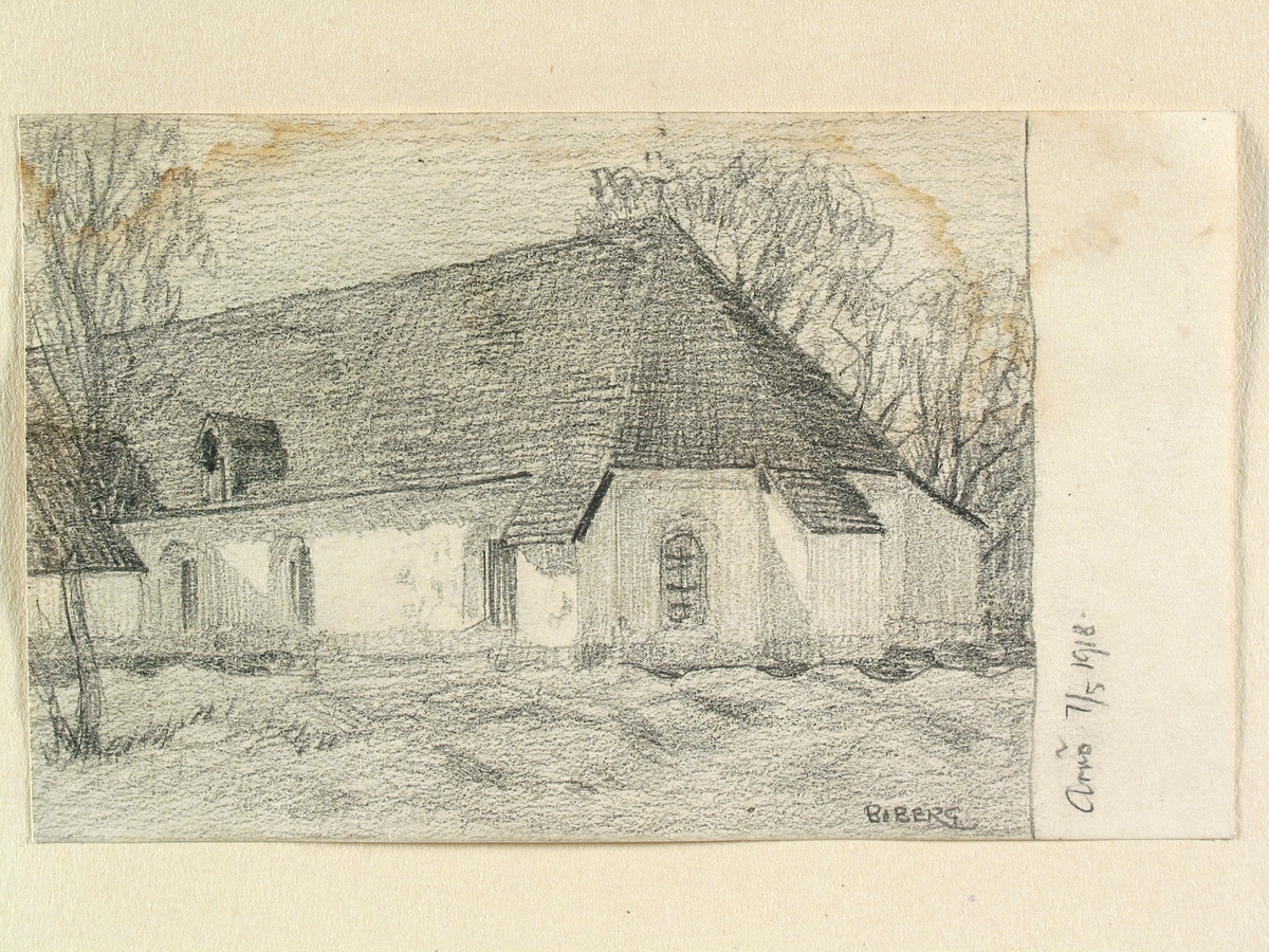 Teckning av Ferdinand Boberg. Uppland, Trögds hd., Arnö kyrka