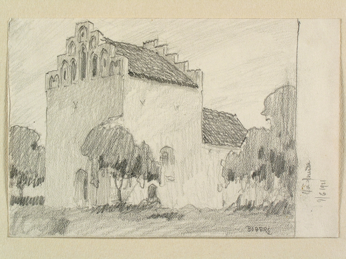 Teckning av Ferdinand Boberg. Skåne, Luggude hd., Häslunda k:a
