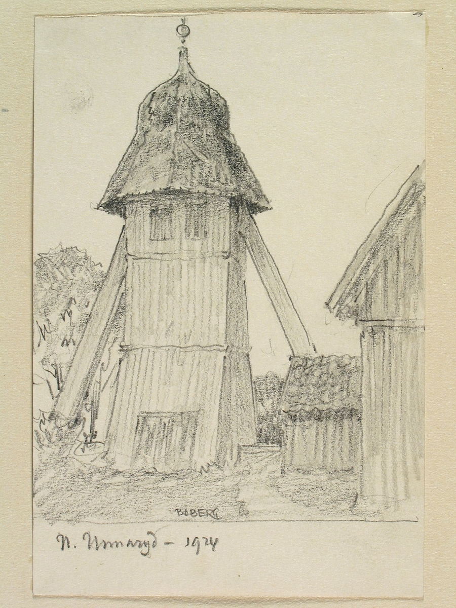 Teckning av Ferdinand Boberg. Småland, Mo hd., Unnaryds k:a