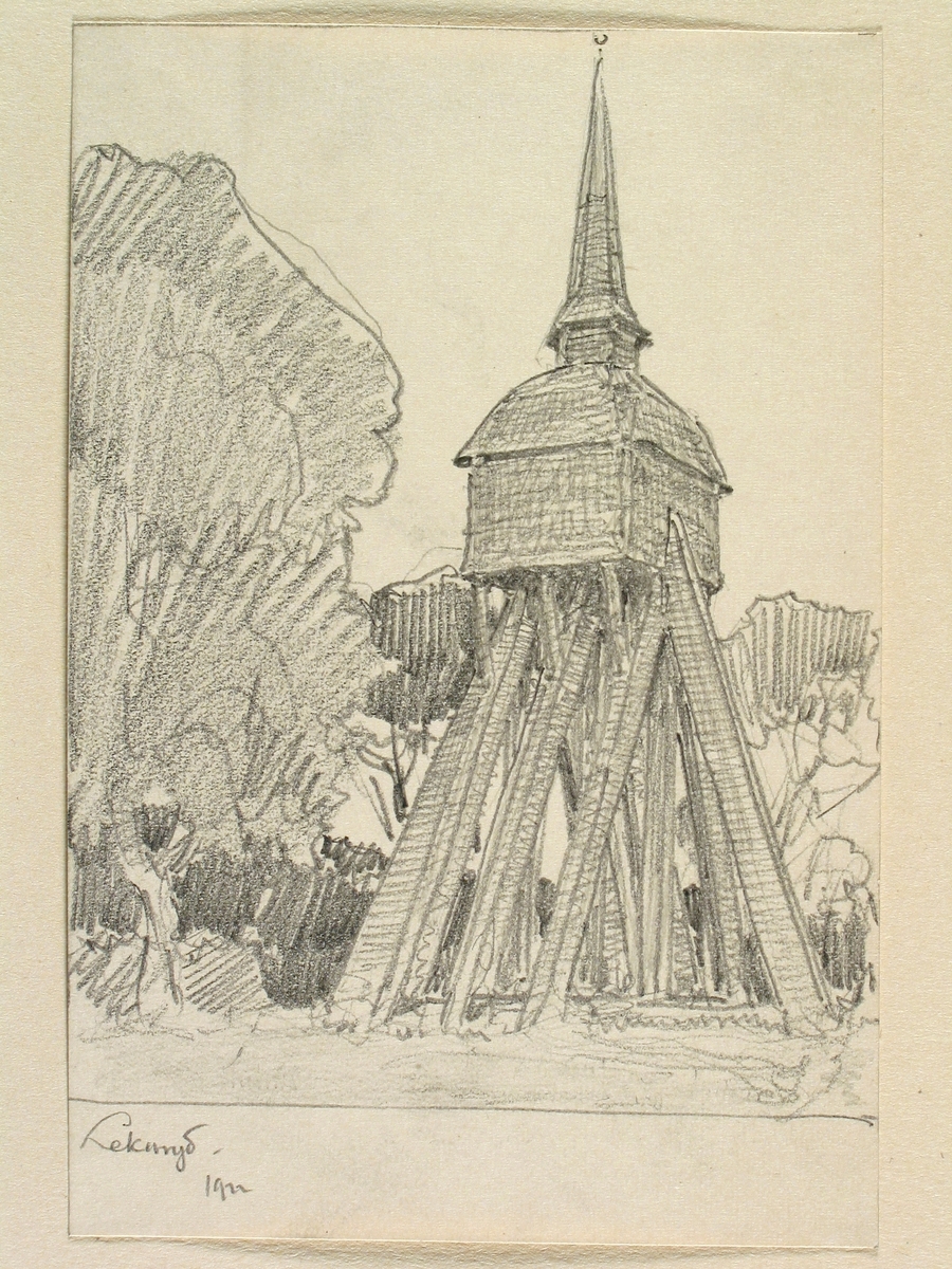 Teckning av Ferdinand Boberg. Småland, Allbo hd., Lekaryds kyrka