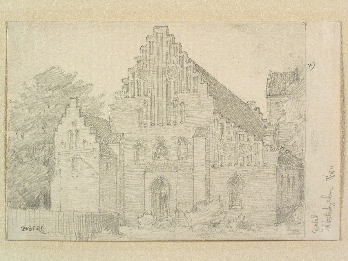 Teckning av Ferdinand Boberg. Ystad, Kyrkan, Gråbrödraklostret, x) m. S:t Petri torn