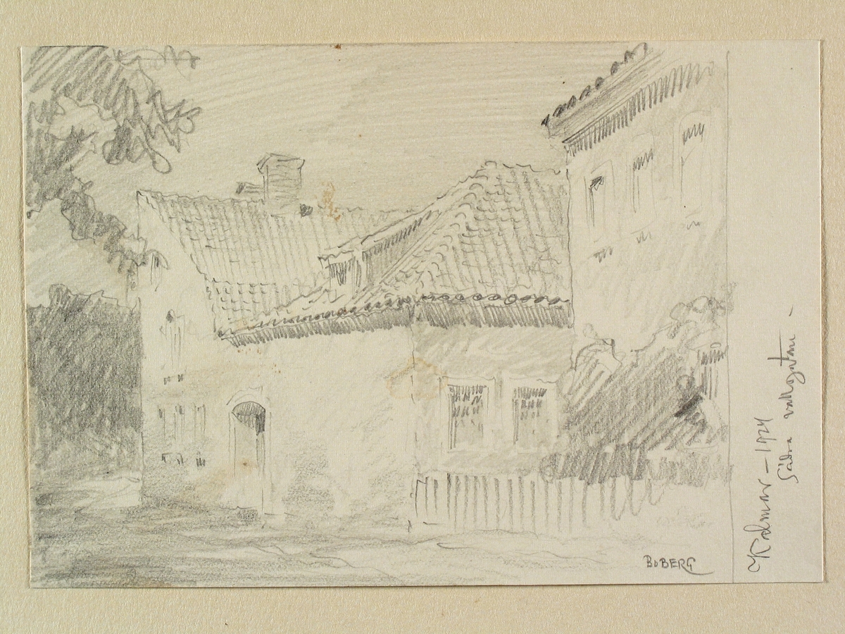 Teckning av Ferdinand Boberg. Kalmar, Södra Vallgatan