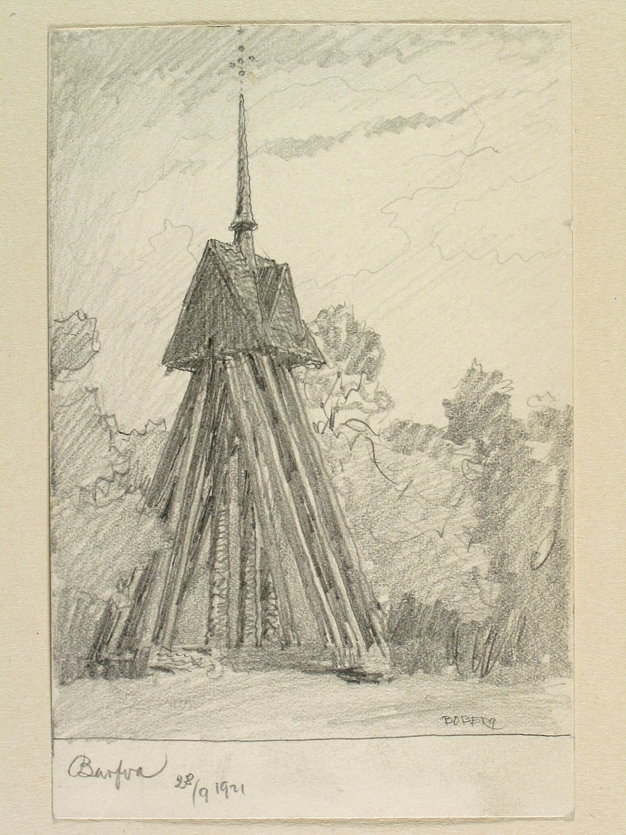 Teckning av Ferdinand Boberg. Södermanland, Österrekarne hd., Barva kyrka