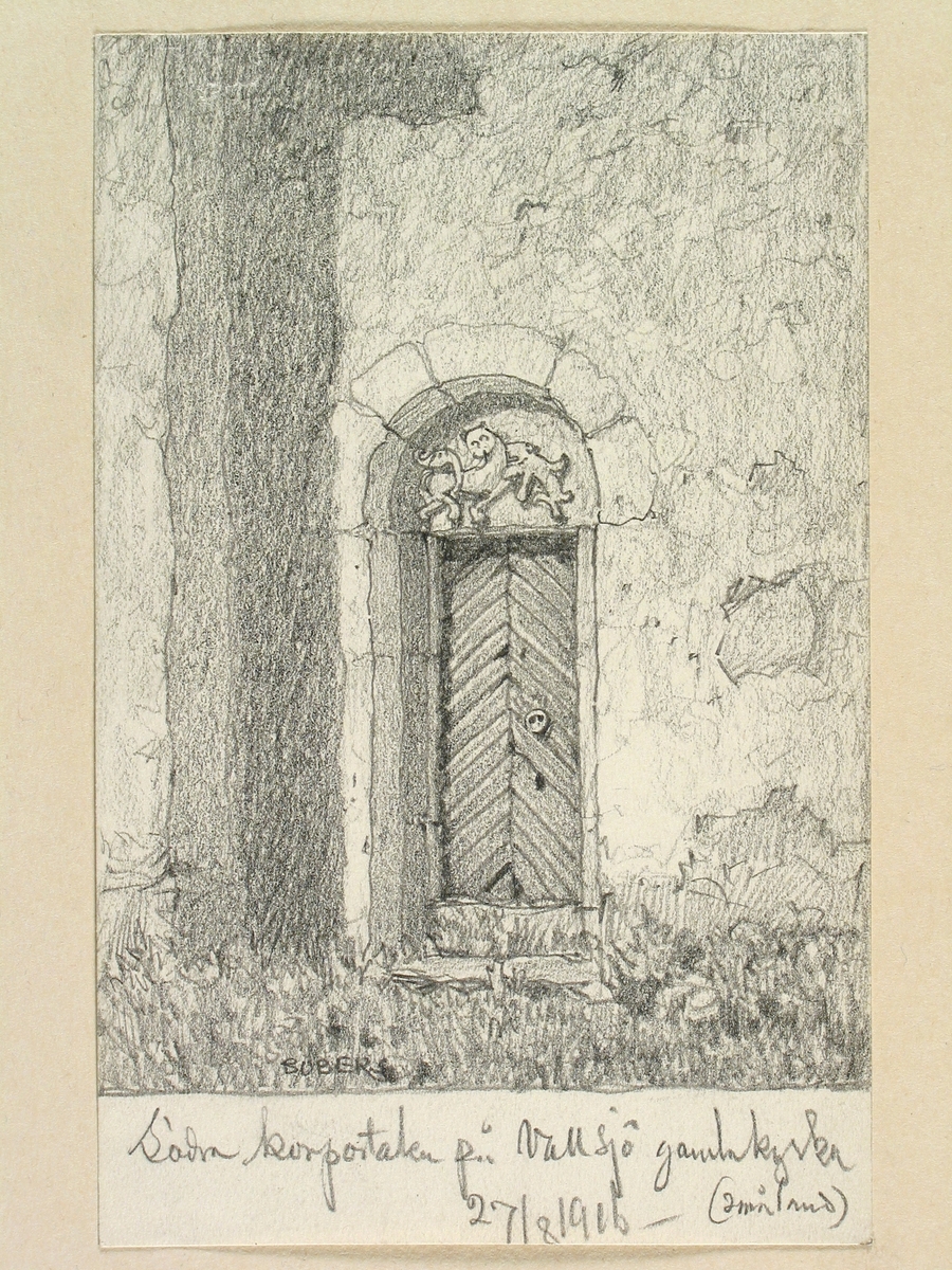 Teckning av Ferdinand Boberg. Småland, Västra hd., Vallsjö kyrka