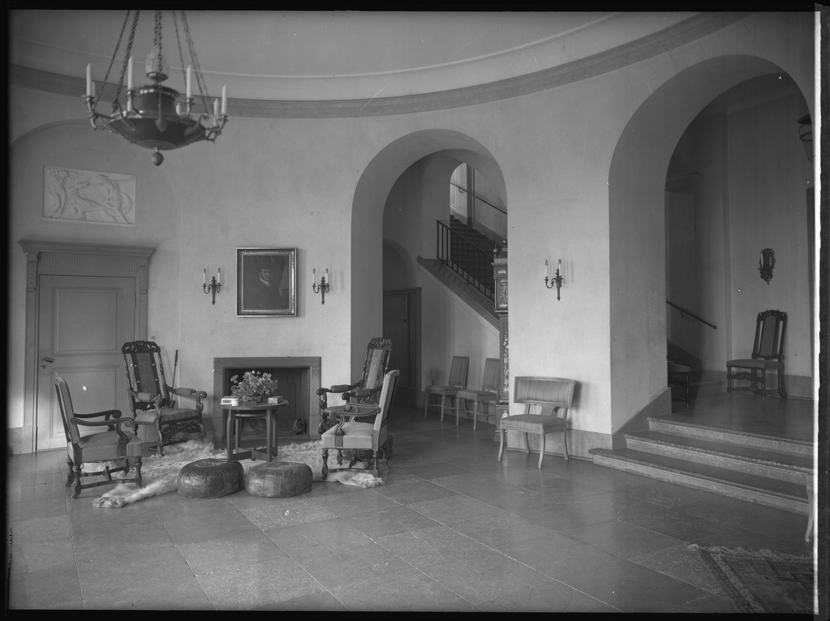 Östergötland. Hanekinds hd. Vists sn. Bjärka - Säby. Vestibulen. Fot. Atelier Jaeger, Sthlm o. Joh. E. Thorin, Åtvidaberg. Se: Svenska Slott o. Herresäten. Ny samling 1932-33. Neg. gåva av E. Lundquists bokförlag. Acc. nr. 150*1935. Ur Herrgårdar och boställen, Östergötland vol 1.