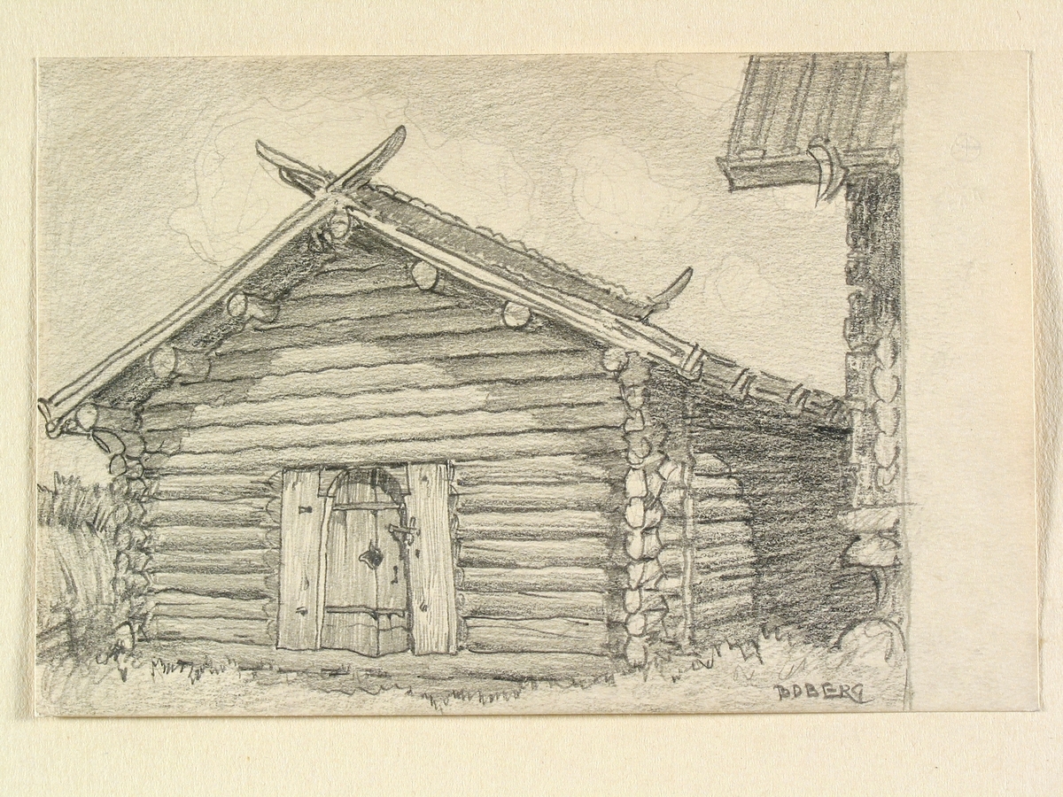 Dalarna, Mora sn., Mora, Zorns gammelgård. Teckning av Ferdinand Boberg