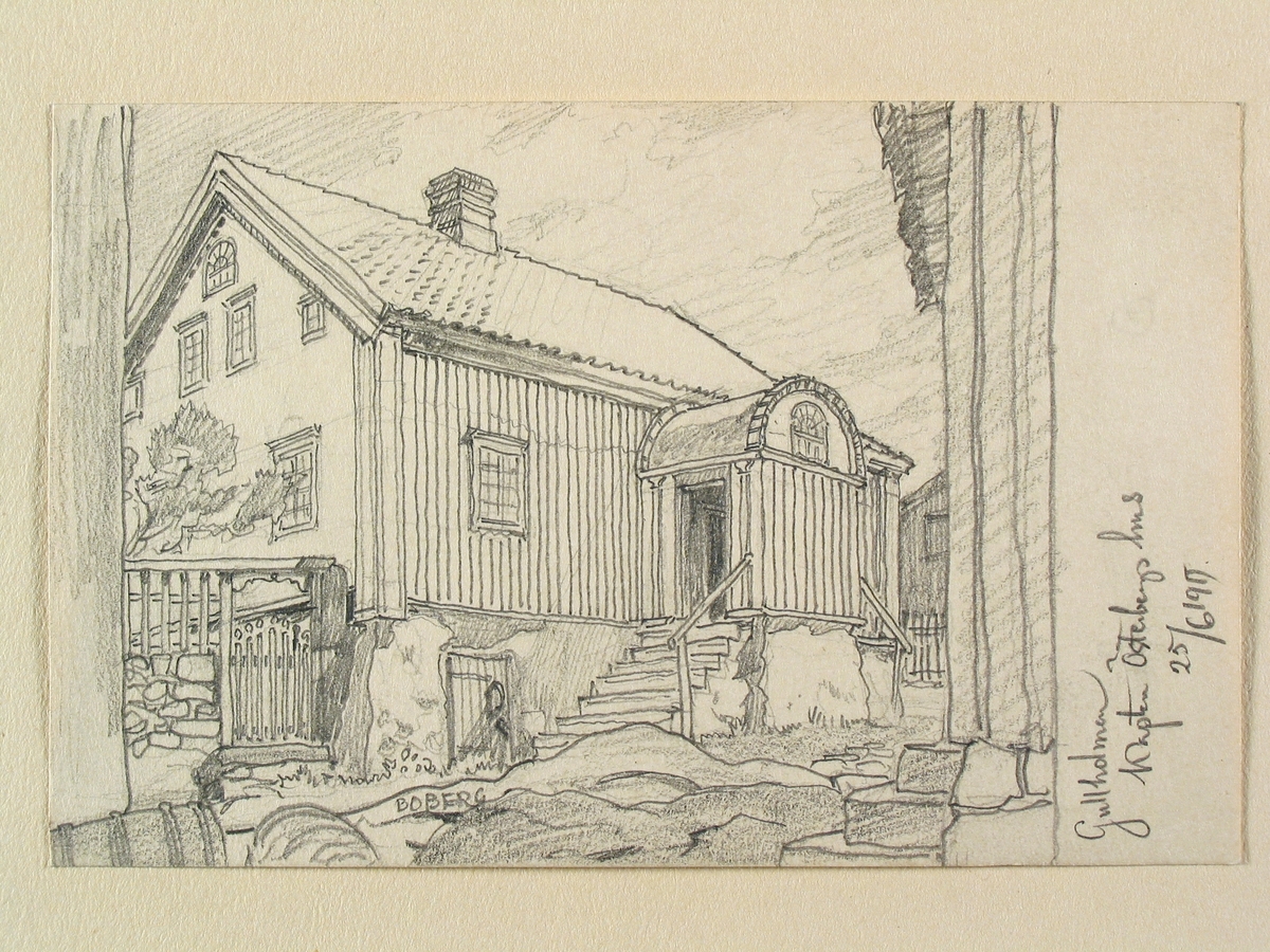 Bohuslän, Gullholmen. Kapten Österbergs hus. Teckning av Ferdinand Boberg