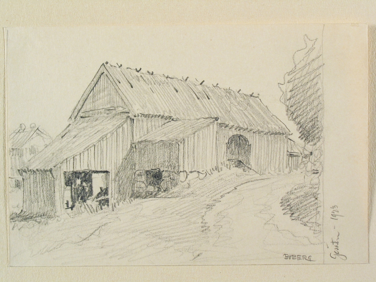 Dalsland, Gesäter. Ladugård. Teckning av Ferdinand Boberg